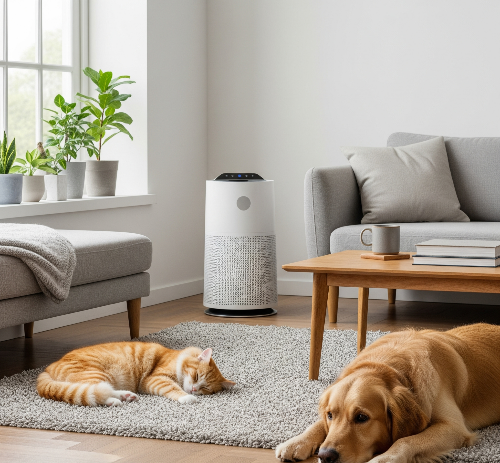 LG전자 퓨리케어 360 공기청정기 펫플러스는 반려동물 가정을 위해 펫모드와 펫 전용 필터를 사용합니다. 펫모드를 작동시키면 공기청정기가 바닥의 반려동물 털과 미세먼지를 집중적으로 흡입하고, 반려동물 활동량이 많은 시간대에는 더 강력하게 작동하여 효율적인 관리가 가능합니다. 또한, 일반 필터로는 잡기 어려웠던 반려동물로 인한 냄새와 털을 효과적으로 제거하기 위한 펫 전용 광촉매 탈취 필터가 적용되어 있습니다. 이 필터는 반려동물의 배변 냄새, 체취 등 불쾌한 냄새를 강력하게 잡아주며, 털날림을 줄여주어 알레르기 유발 물질 관리에도 도움을 줍니다. 펫케어 공기청정기로서의 역할을 톡톡히 해냅니다.